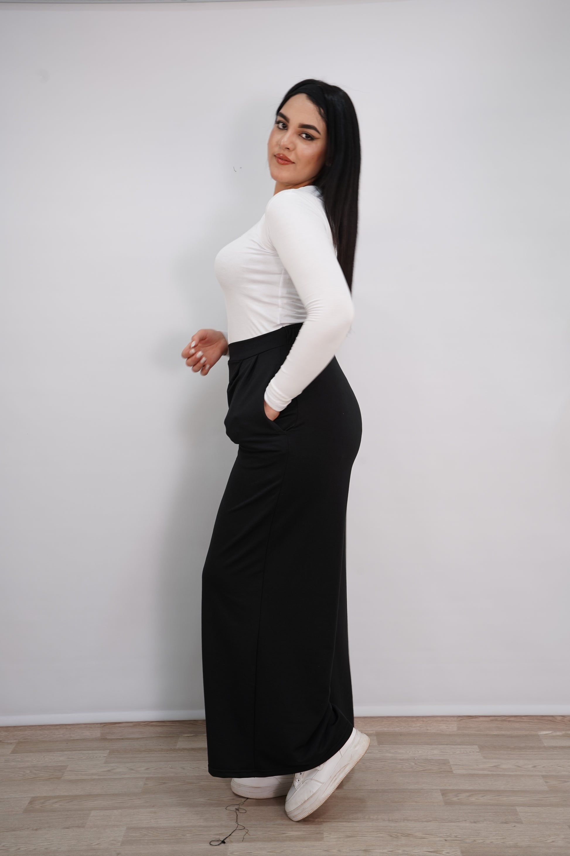 Le pantalon indispensable de la saison est là. Une coupe ultra-large ("wide leg") pour un style fluide et décontracté sans effort. Matière douce et agréable à porter toute la journée.